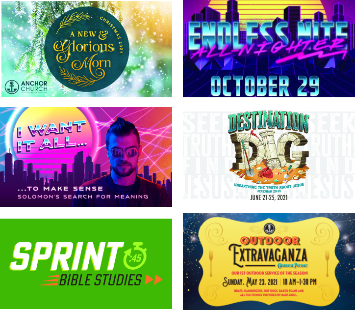 Anchor Church is home to energetic leadership that appreciates bright colors and modern elements to bring a youthfulness to scripture. Lemon Ad has created infographics, posters, palm cards, and annual reports to connect directly with the congregants and guests.