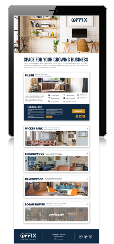Direct to consumer marketing strategies are executed to increase occupancy of this boutique co-working space. Since 2019, we have managed social media,